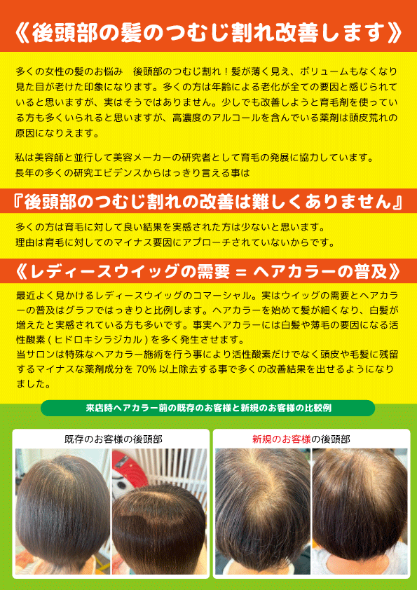 多くの女性の髪のお悩み 後頭部のつむじ割れ!髪が薄く見え、ボリュームもなくなり見た目が老けた印象になります。多くの方は年齢による老化が全ての要因と感じられていると思いますが、実はそうではありません。少しでも改善しようと育毛剤を使ってい